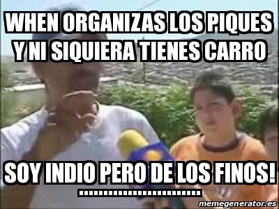 Diviértete con el meme yo no ocurrirme un titulo yo ser indio de los finos subido por carpio1. Comparte el video y suscribete. Cuando vas a la pochota en mototaxi.